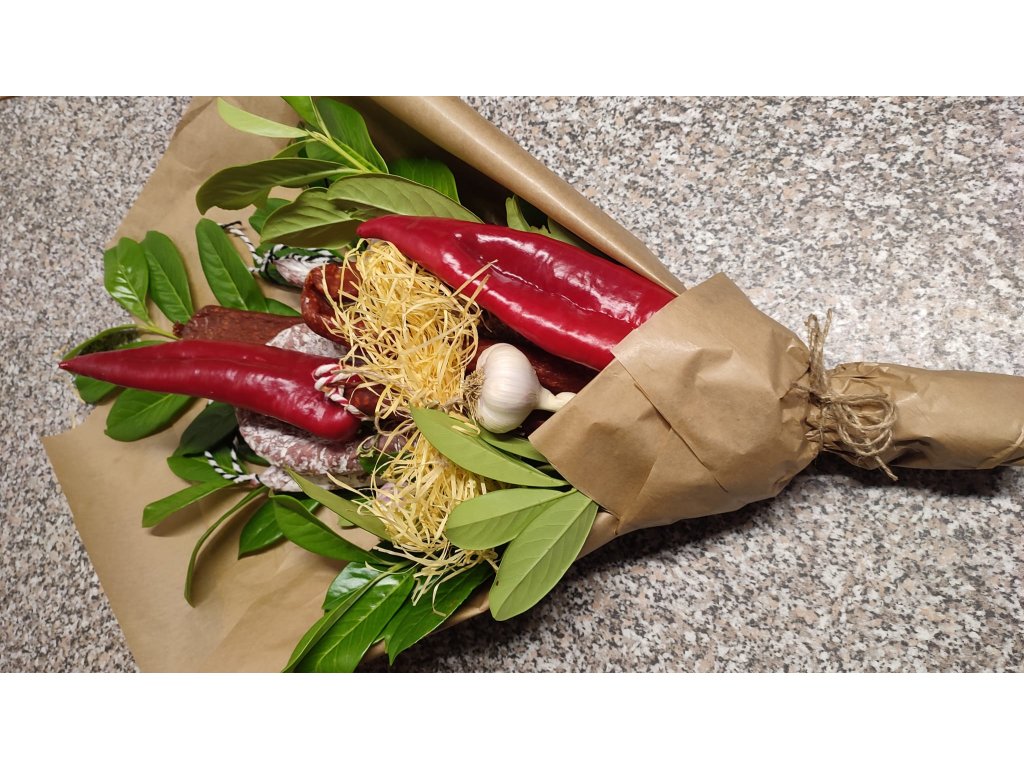 Klobásové kytice vyrábíme v cenovém rozmezí od cca 800 Kč do cca 2.000 Kč.